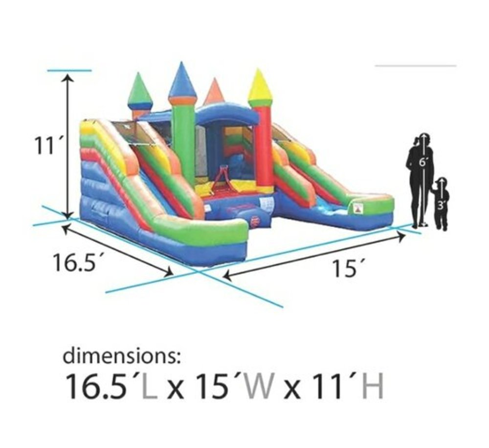 Double the fun with two slides and a 6' x 5' jumping space makes this option great for toddlers up to preteens. Each slide has a pool at the end for a soft yet splashy landing.